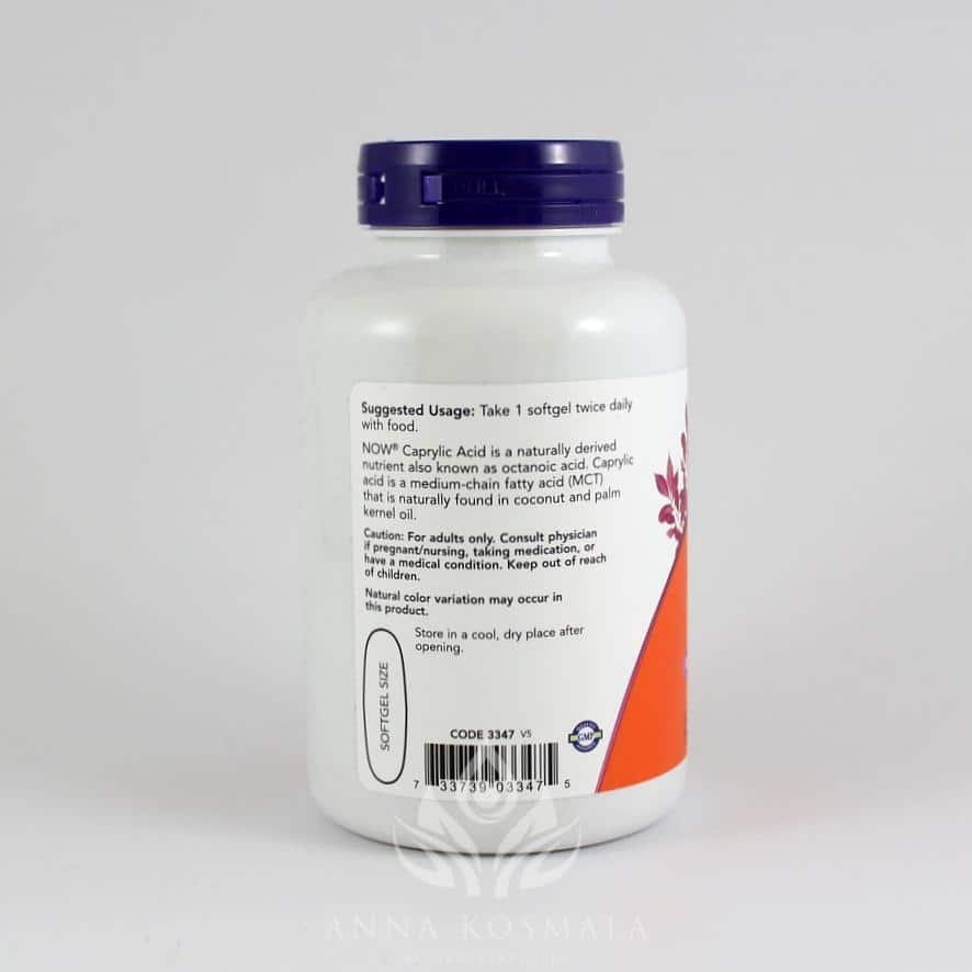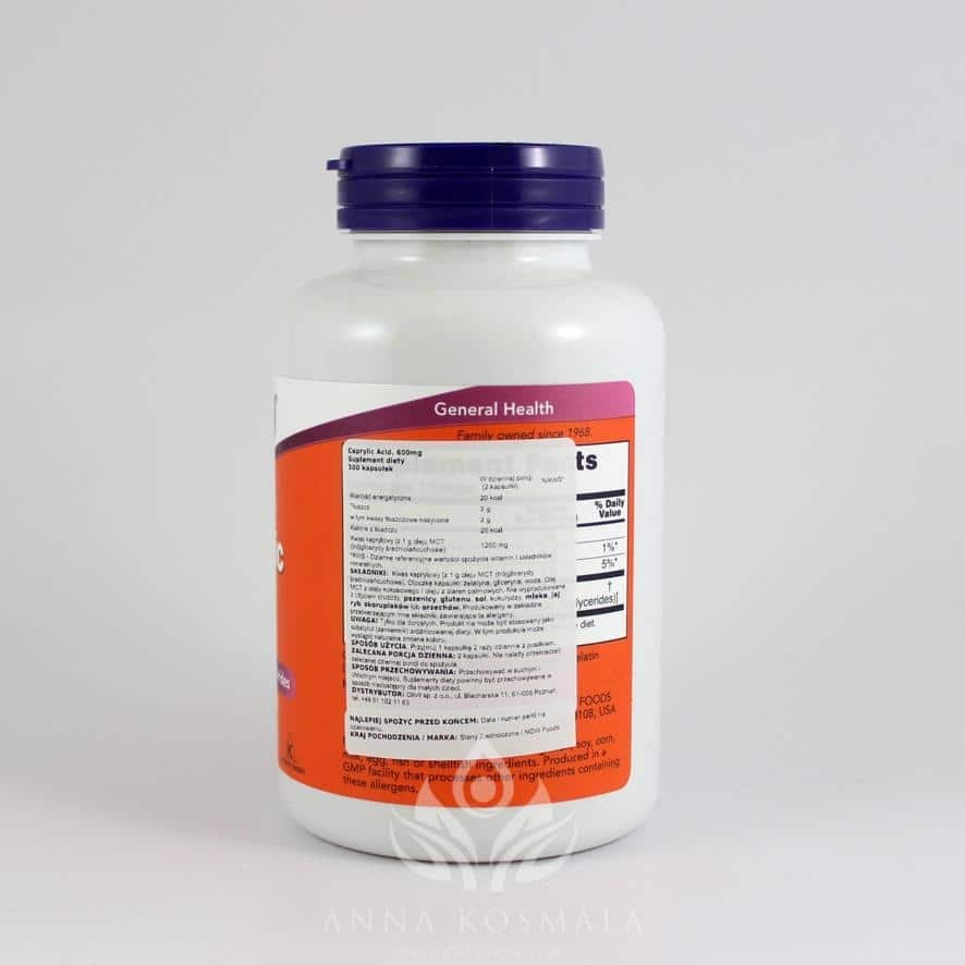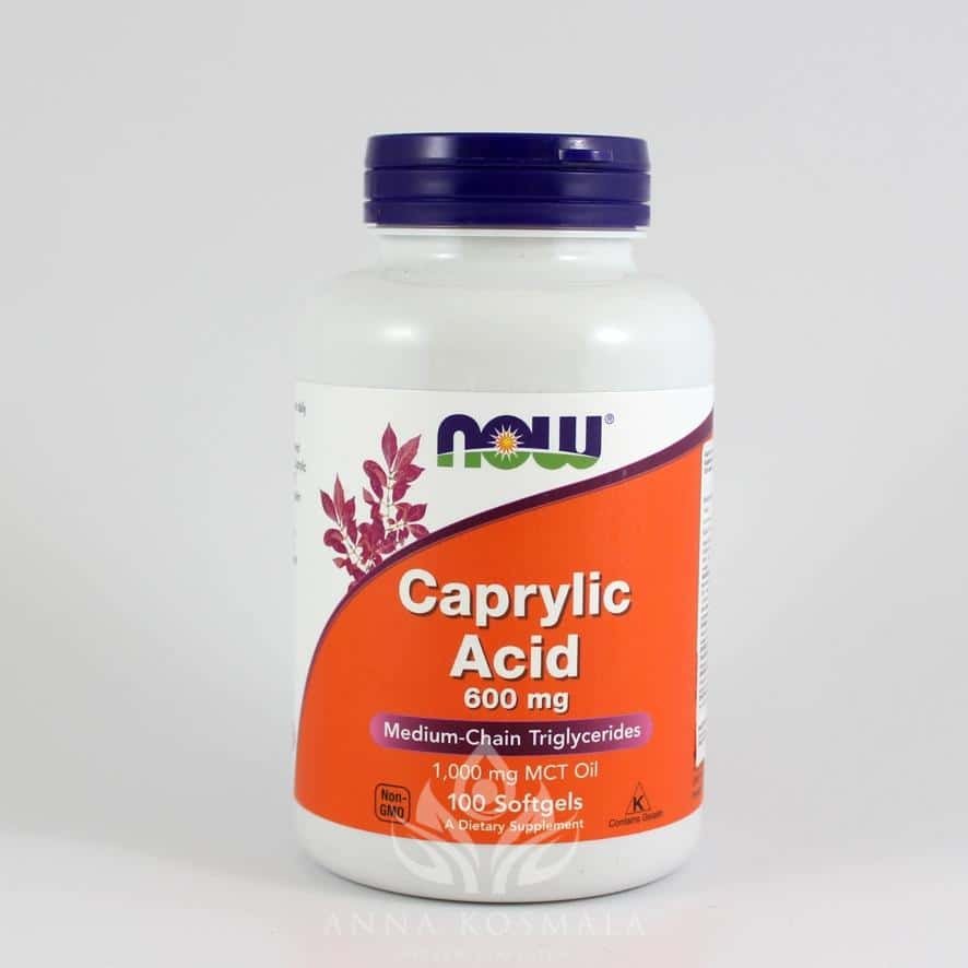 Składniki aktywne (1 kapsułka): Kwas kaprylowy z 1000 g oleju MCT (trójglicerydy kwasów tłuszczowych średniołańcuchowych) 600 mg