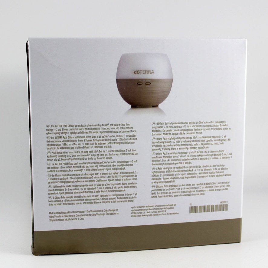 Dyfuzor PETAL ma trzy ustawienia czasowe – 2 i 6 godzin pracy ciągłej oraz 12 godzin pracy z przerwami – co pozwala dostosować uwalnianie olejków eterycznych do powietrza. Ten wygodny dyfuzor jest stabilny, lekki i łatwy w użyciu – idealny do użytku domowego lub biurowego. Dyfuzor PETAL przenosi wyjątkowo drobną, ale znaczną ilość mgiełki do powietrza, uwalniając aromatyczne i terapeutyczne zalety olejków eterycznych doTERRA CPTG® szybko i bezpiecznie. Ten wysokiej jakości, niedrogi dyfuzor jest idealny zarówno dla początkujących, jak i doświadczonych użytkowników olejków eterycznych, którzy chcą niezawodnego, łatwego w użyciu dyfuzora.