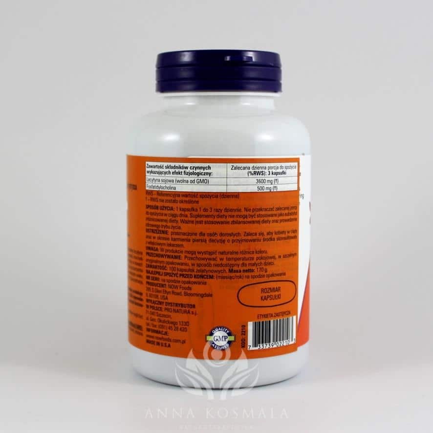 Składniki: Lecytyna sojowa (z oleju sojowego wolnego od modyfikacji GMO); substancje rozpuszczające: woda, gliceryna; składnik kapsułki elastycznej: żelatyna.