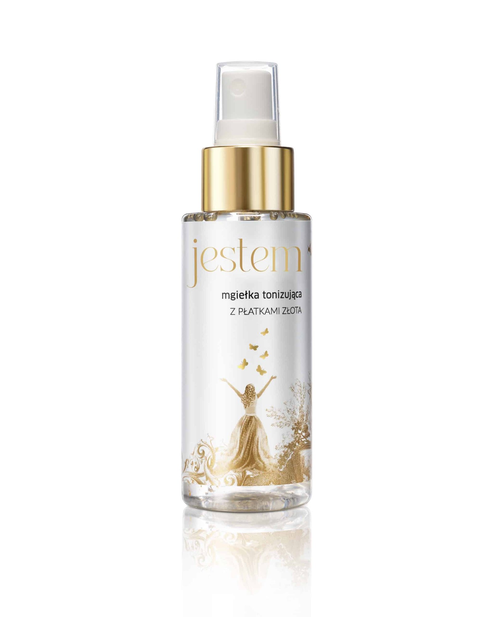 Mgiełka tonizująca z płatkami złota JESTEM to luksusowy, lekki kosmetyk, który zapewnia skórze natychmiastowe odświeżenie, ukojenie i delikatne rozświetlenie. Jej ultradrobna mgiełka przywraca skórze równowagę po oczyszczaniu, tonizuje i przygotowuje cerę do przyjęcia kolejnych etapów pielęgnacji. Zawarte w niej płatki złota odbijają światło, nadając skórze świeży, promienny wygląd.