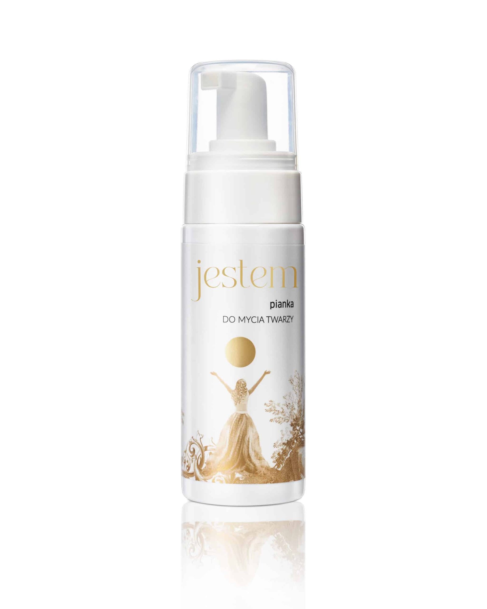 Pianka do mycia twarzy JESTEM to lekki, puszysty kosmetyk czyszczący, który delikatnie usuwa makijaż, sebum i zanieczyszczenia nagromadzone w ciągu dnia. Już jedno lub dwa pompnięcia wystarczą, by w kontakcie z wodą stworzyć kremową, miękką pianę – idealną do codziennego porannego i wieczornego oczyszczania skóry. Dzięki starannie dobranym składnikom aktywnym, pianka nie narusza naturalnej bariery ochronnej skóry, nie powoduje uczucia ściągnięcia ani podrażnień, pozostawiając cerę świeżą, oczyszczoną i miękką w dotyku. To doskonały pierwszy krok codziennej pielęgnacji — skóra staje się czysta, odświeżona i gotowa na kolejne kosmetyki.