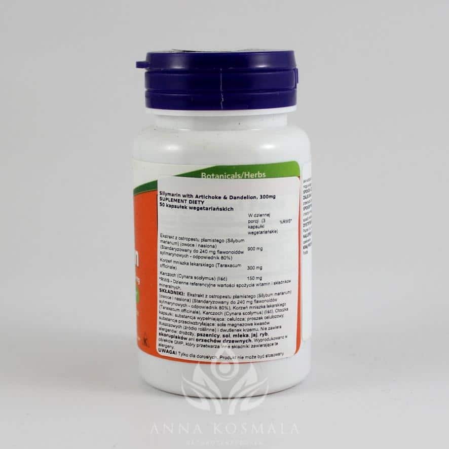 Składniki: Ekstrakt z łuski ostropestu (Sylibum Marianum) (DER 36,4:1; 80% sylimaryny); korzeń mniszka lekarskiego (Taraxacum officinale) proszek; liść karczocha zwyczajnego (Cynara scolymus) proszek; materiał kapsułki: estry pochodne celulozy; subst. wypełniająca: celuloza mikrokrystaliczna; subst. przeciwzbrylająca: krzemionka bezpostaciowa.