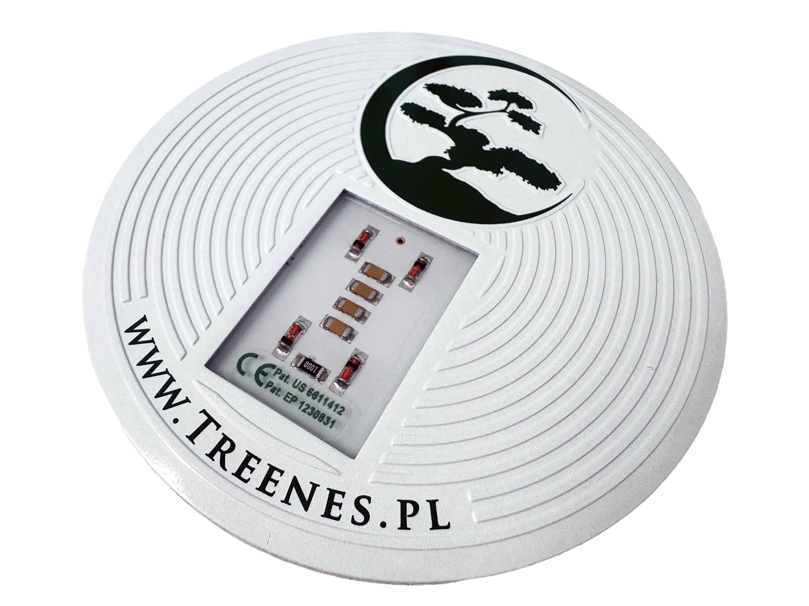 Absorber Treenes Extra Slim – nowoczesna ochrona przed smogiem elektromagnetycznym. Kompaktowy, wodoszczelny, zasięg 16 m², 360°.