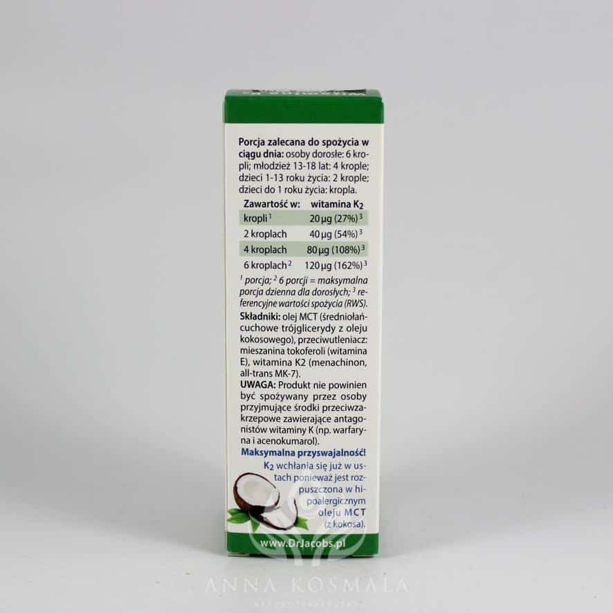 Składniki: Olej MCT (z kokosa, 98%), przeciwutleniacz: mieszanina tokoferoli, witamina K2 (all-trans menachinon).