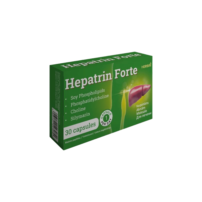 Hepatrin Forte Herbin 30 kapsułek – suplement diety z fosfolipidami sojowymi, witaminą E i sylimaryną z ostropestu plamistego. Porcja dzienna: 1 kapsułka. Dystrybutor: ARAM NATURA.